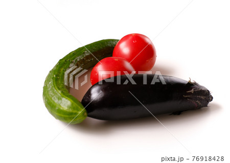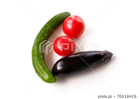 【野菜】キュウリ、トマト、ナス・白背景の野菜素材