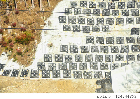 吹付法枠工で施工された土砂崩れ現場