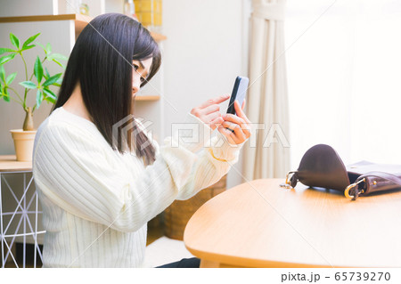 スマホをタップする女性 困る 鞄 コピースペース
