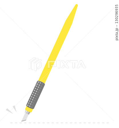 黄色いデザインナイフと点線のイラスト