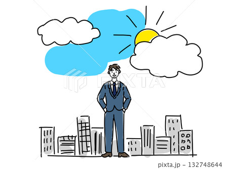 青空の下、自由を感じる会社員