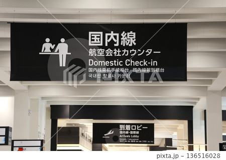 空港の国内線乗り場を表す看板