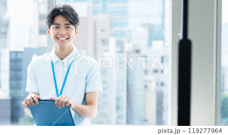 カメラ目線の男性教師