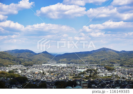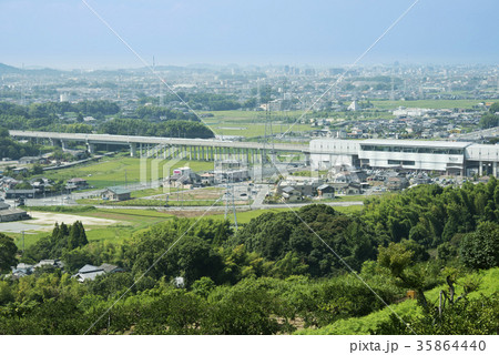 大牟田市甘木山から大牟田市街とJR九州新幹線新大牟田駅