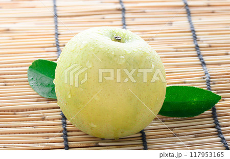 シャキッとした食感 二十世紀梨 ( 木目背景 )