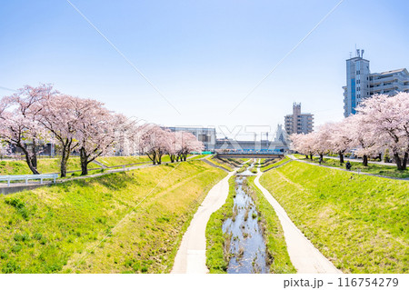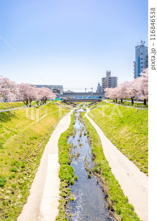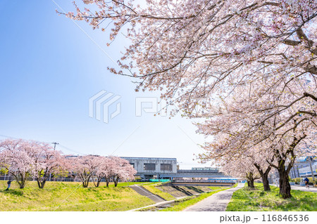 仙台市地下鉄南北線富沢駅沿線と笊川沿いに咲く満開の桜 遊歩道 花見