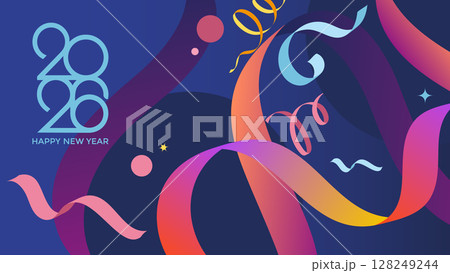 Creative Design to 2026 Happy New Year Celebration Concept, Banner with a Variety of colorful confetti and 2026 Logo text design