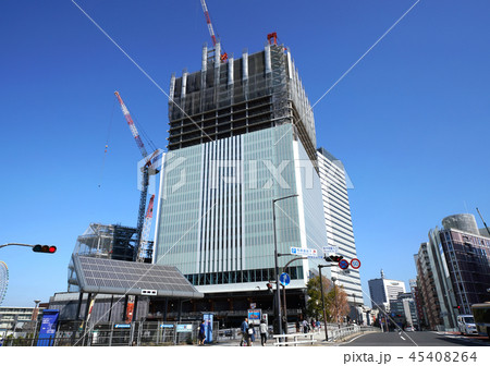 日本の川崎都市景観 川崎市新本庁舎の新築工事などを望む