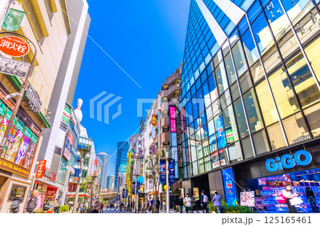 日本の東京都市景観 インバウンド…春めく街…青空と太陽光に映える池袋駅東口(北)… 希望の光…