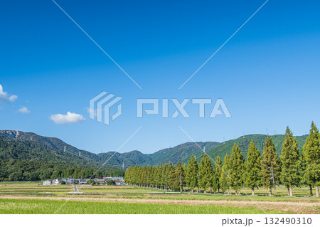 滋賀県高島市マキノ町の夏の緑が美しいメタセコイアの並木道