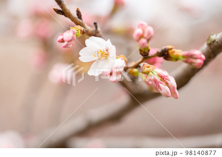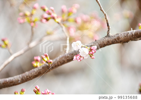 咲き始めのソメイヨシの桜の花 つぼみ アップ