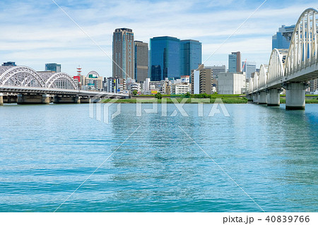 淀川河川敷から見た大阪駅周辺高層ビル群 都市景観