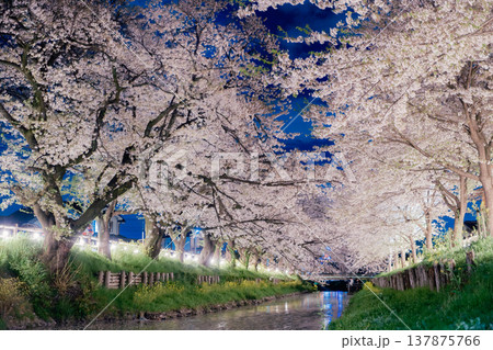 新河岸川の春 満開の桜並木 埼玉県 川越市