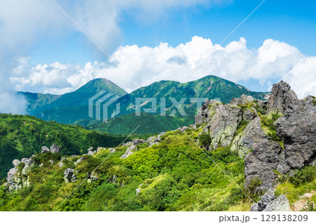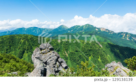 夏の妙高山登山(北峰頂上から焼山・火打山方面の眺め)