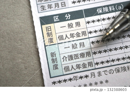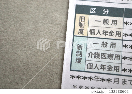 生命保険料控除の新旧制度区分。年末調整や確定申告の書類。