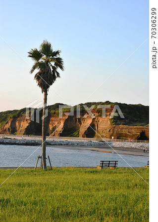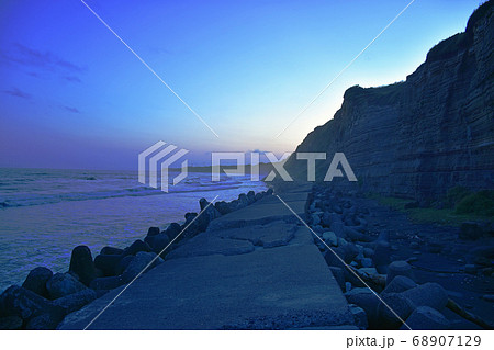 千葉県銚子市の屏風ケ浦遊歩道 夕景