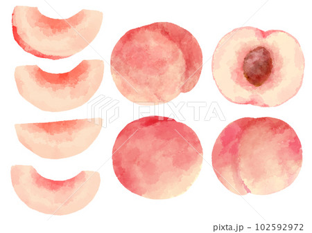 手描き水彩風の桃のイラストセット