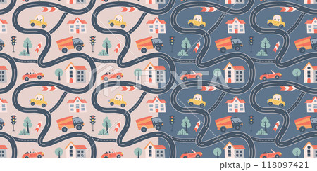 Kids seamless pattern with car, bus and road. Perfect for fabric , digital paper, cards.