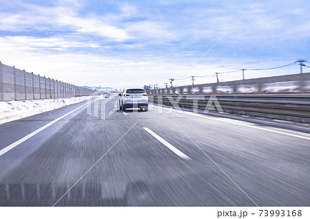北陸自動車道 上り (高速道路) 三条市付近 ウインカーを出して車線変更する前方の車