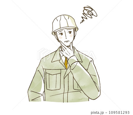 ヘルメットを被り冷や汗をかいてPC作業に焦る作業員