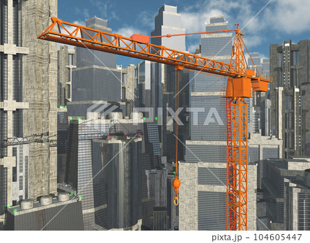 Construction crane and skyscrapers