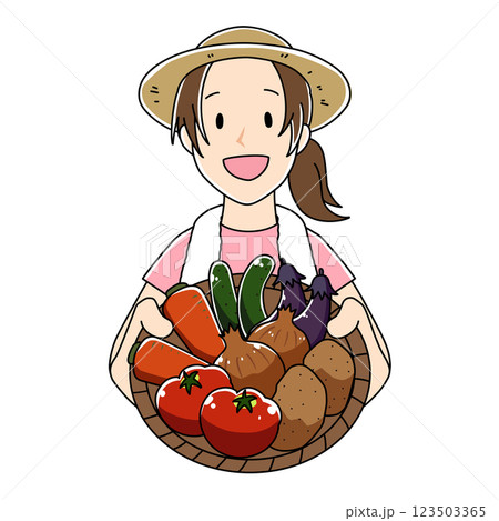 手描き風の野菜を持った女性