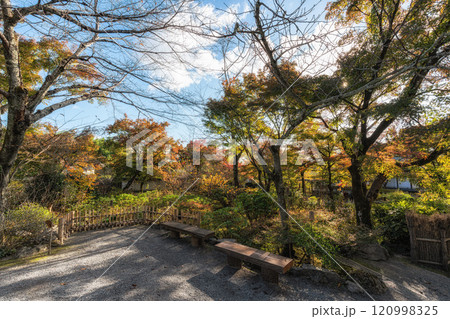 Wood Corridor with autumn maple garden of Hasedera Temple, Nara