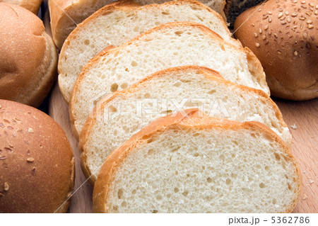 baked wholemeal bread buns and sliced rye bread