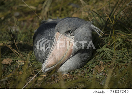 一羽佇み物思いに耽るハシビロコウの眼が光る