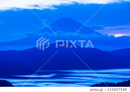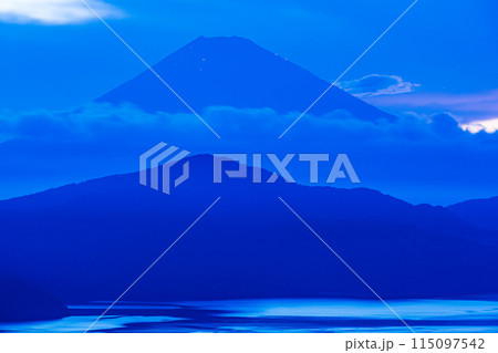 (神奈川県)箱根・芦ノ湖と富士山 日が暮れて