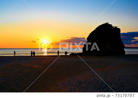 稲佐の浜 弁天島 夕日 天日隅宮 出雲市