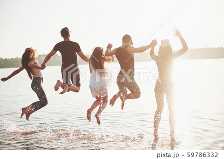Happy friends have fun on the beach - Young people playing in open air water on summer holidays