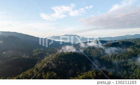Morning mist in the forest and mountains