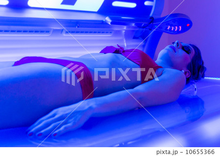 Young woman sunbathing in solarium