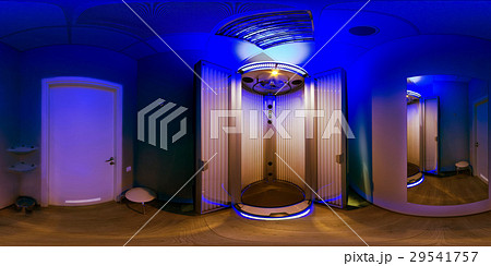 Beautiful brunette tans in modern tanning booth