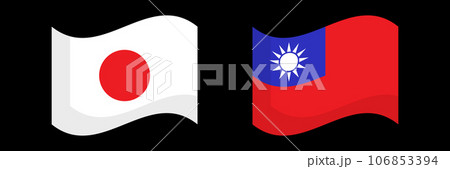 なびく日本国旗と台湾国旗のアイコンセット。ベクター。