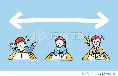 受験生の差 試験本番にすいすい解ける学生と解けない学生のイラスト