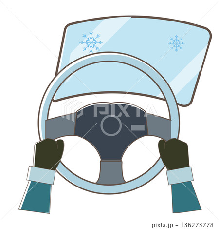 冬の車内 結露で曇った窓とハンドルのイラスト