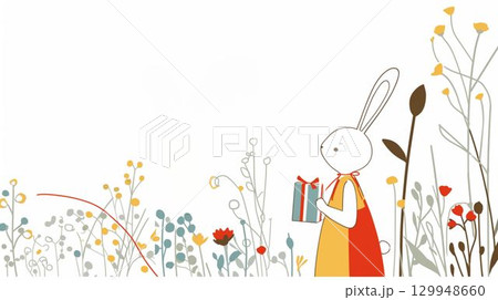 プレゼントを持つうさぎのかわいいシンプルイラスト