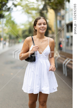 街を歩きながらショッピングを楽しむ女性のライフスタイルポートレート