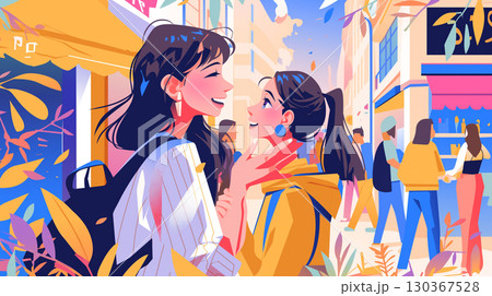 油彩タッチの街と人の賑わい/oil painting city and crowd scene
