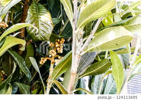 岩手県盛岡市で冬に咲く枇杷のつぼみと花