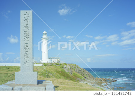 秋晴れの尻屋埼の風景 青森県東通村 9月末 岬の地蔵