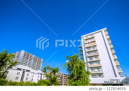 日本の横浜都市景観 8月。SOTETSU 平沼橋駅前の高層マンションなどを望む
