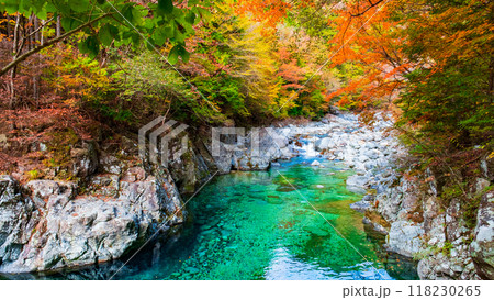 秋の長野県上松町 紅葉の寝覚の床