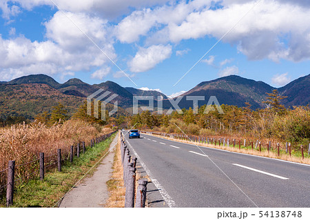 栃木県日光市 戦場ヶ原 国道120号 (10月) 日本ロマンチック街道