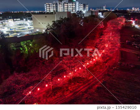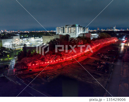 空撮「埼玉県」見沼田んぼの桜回廊ライトアップをドローンで撮影