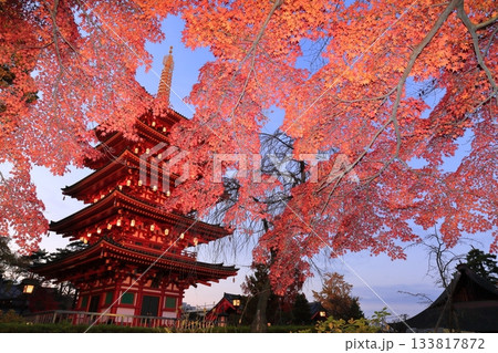 日野市高幡不動尊 五重塔と紅葉 ライトアップ