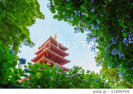 高幡不動尊 五重塔と紫陽花