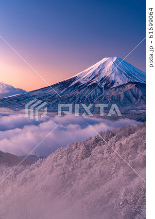 《山梨県》大雲海に浮かぶ富士山・雪景色